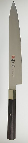 天味寿楽安来銀紙三号ペティナイフ150mm価格: 5,500円レビュー評価: 0.0 レビュー数:0 天味寿楽の包丁は用途に合わせて鋼材別に2種類のタイプがございます。どちらの品もかなりの人気商品です。用途に合わせてお選び下さい。 こちらの商品は安来鋼銀紙三号タイプとなります。天味寿楽 安来銀紙三号 素材は世界的にも誇る安来鋼銀紙三号を使用した折れず曲がらず研ぎやすく、切味一番で、しかもさびにくい庖丁です。通常のステンレス素材と異なり炭素系の錆びる包丁にも勝るとも劣らない切れ味を誇ります。お手入れが簡単でなおかつ切れる包丁をお求めの方にお薦めです。刃材/安来鋼銀紙三号口金・ビョウ/18-8ステンレス柄/黒合板強化木 天味寿楽 安来青紙スーパー出雲安来の砂鉄より、精練した極上の青紙スーパーという |
